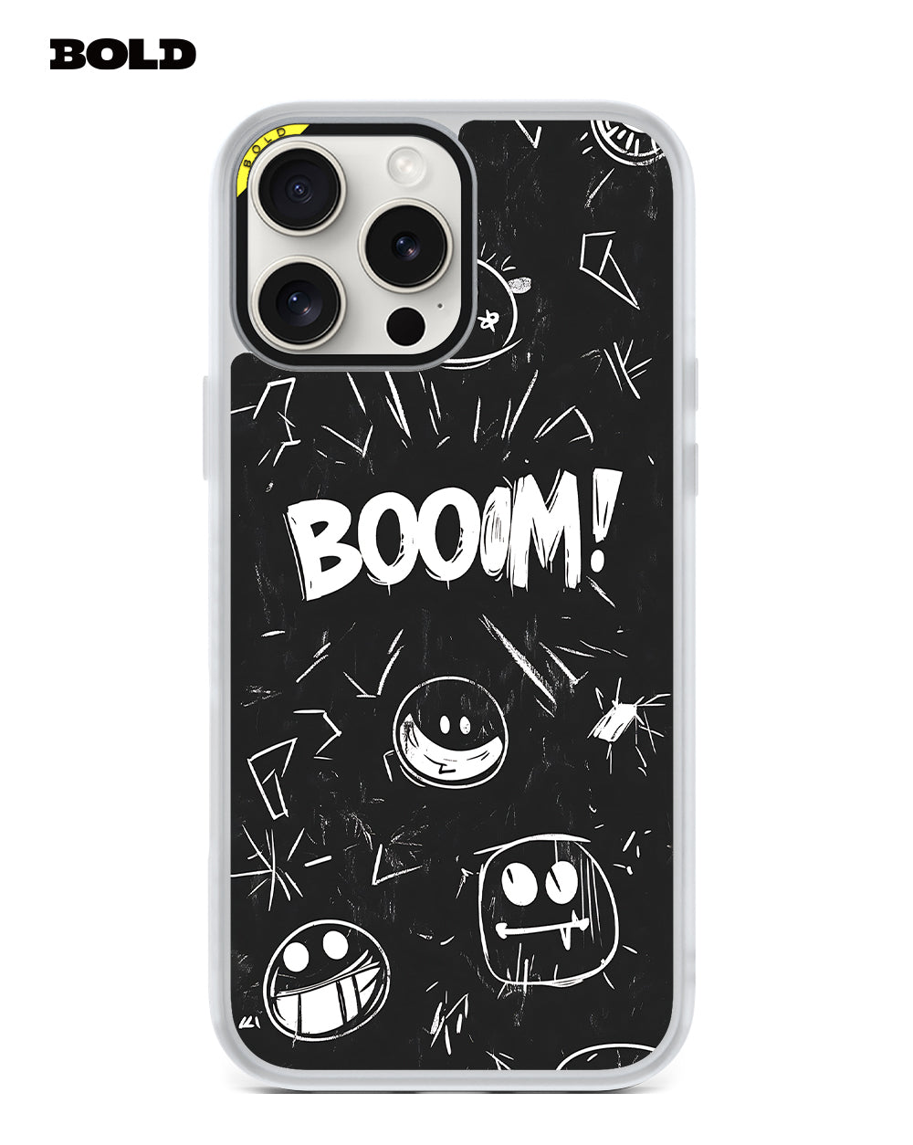 Make a bold statement with this playful phone case, featuring a quirky black and white design filled with fun expressions and the eye-catching word "BOOOM!" Perfect for those who love to showcase their personality, this case adds a touch of humor to your daily routine. Crafted from durable materials, it provides reliable protection for your device against scratches and drops while keeping things light-hearted. Embrace your playful side and give your phone a distinctive look with this unique accessory!