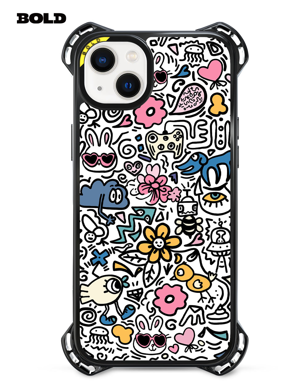 Express your playful personality with this whimsical doodle-themed phone case, featuring a delightful mix of colorful designs. From adorable bunnies to funky flowers and quirky icons, every glance at your phone will bring a smile. Made from sturdy materials, this case offers reliable protection while showcasing your unique style. Elevate your accessory game and let your creativity shine with this fun and vibrant design!