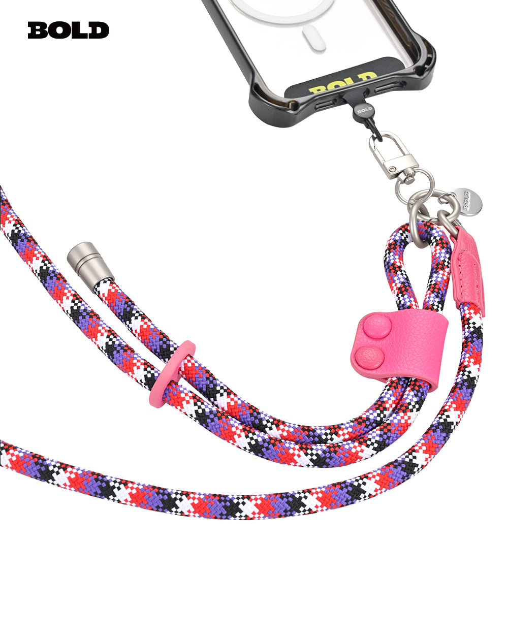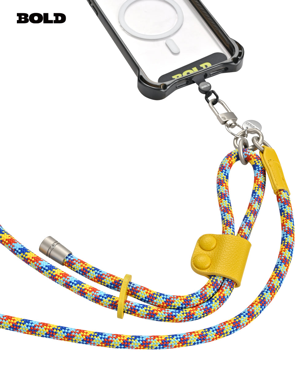 Brighten up your accessories with this lively rope cross-body strap, featuring a striking combination of blue, yellow, and red patterns. Designed for both functionality and flair, this strap is made from durable materials that ensure long-lasting use. The eye-catching leather accent adds a touch of sophistication while the sturdy clips provide a secure attachment to your device. Perfect for keeping your essentials handy and showcasing your vibrant style, this strap is a must-have for any on-the-go lifestyle.